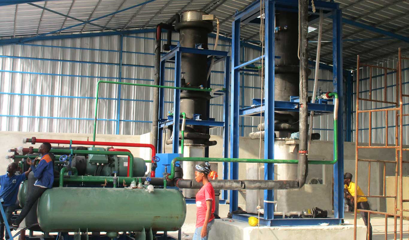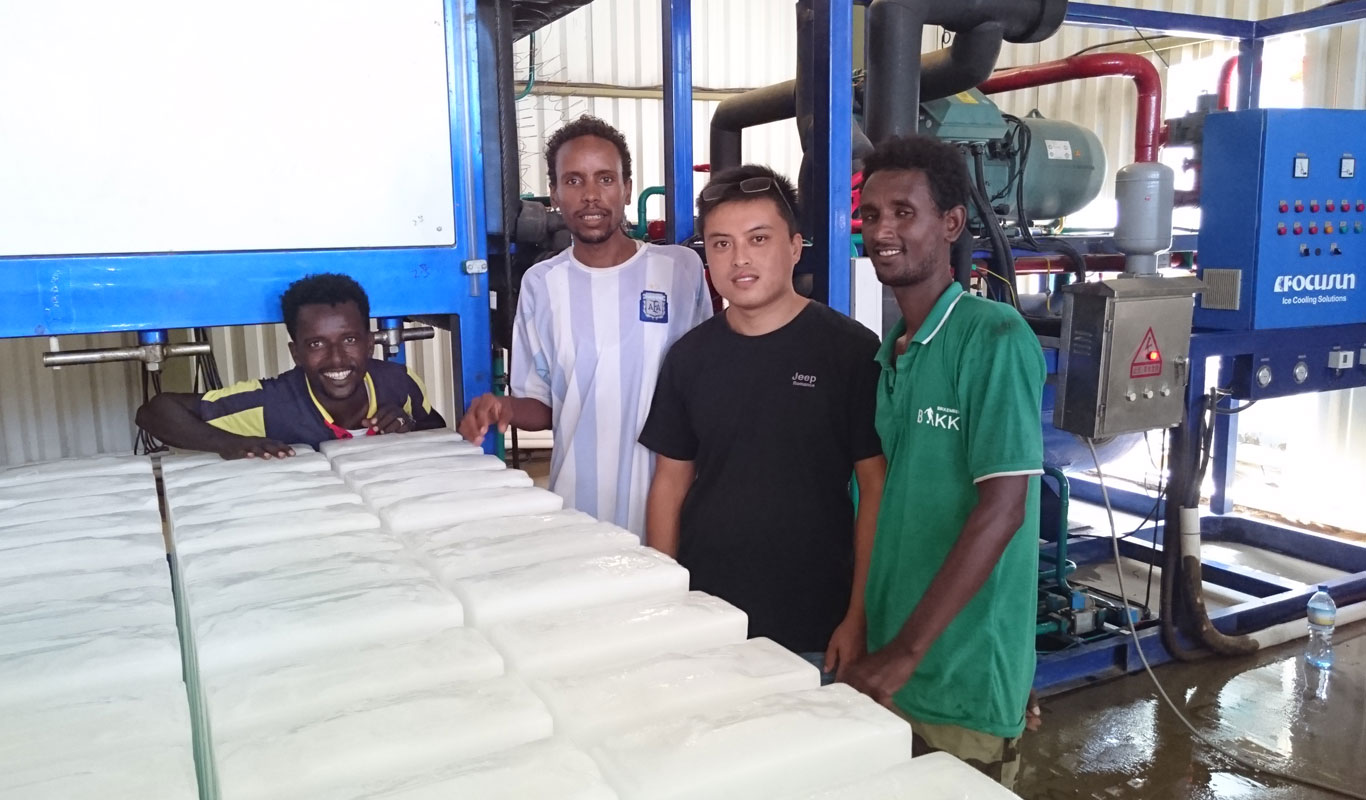 Cote d'Ivoire 2 bộ máy làm đá ống 30 tấn & máy đóng gói & kho lạnh hoàn toàn tự động