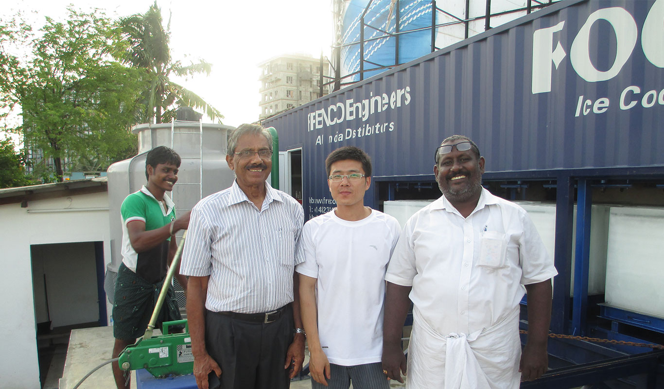 Máy làm đá khối 15 tấn làm lạnh trực tiếp phương thức container lắp đặt ở Ấn Độ